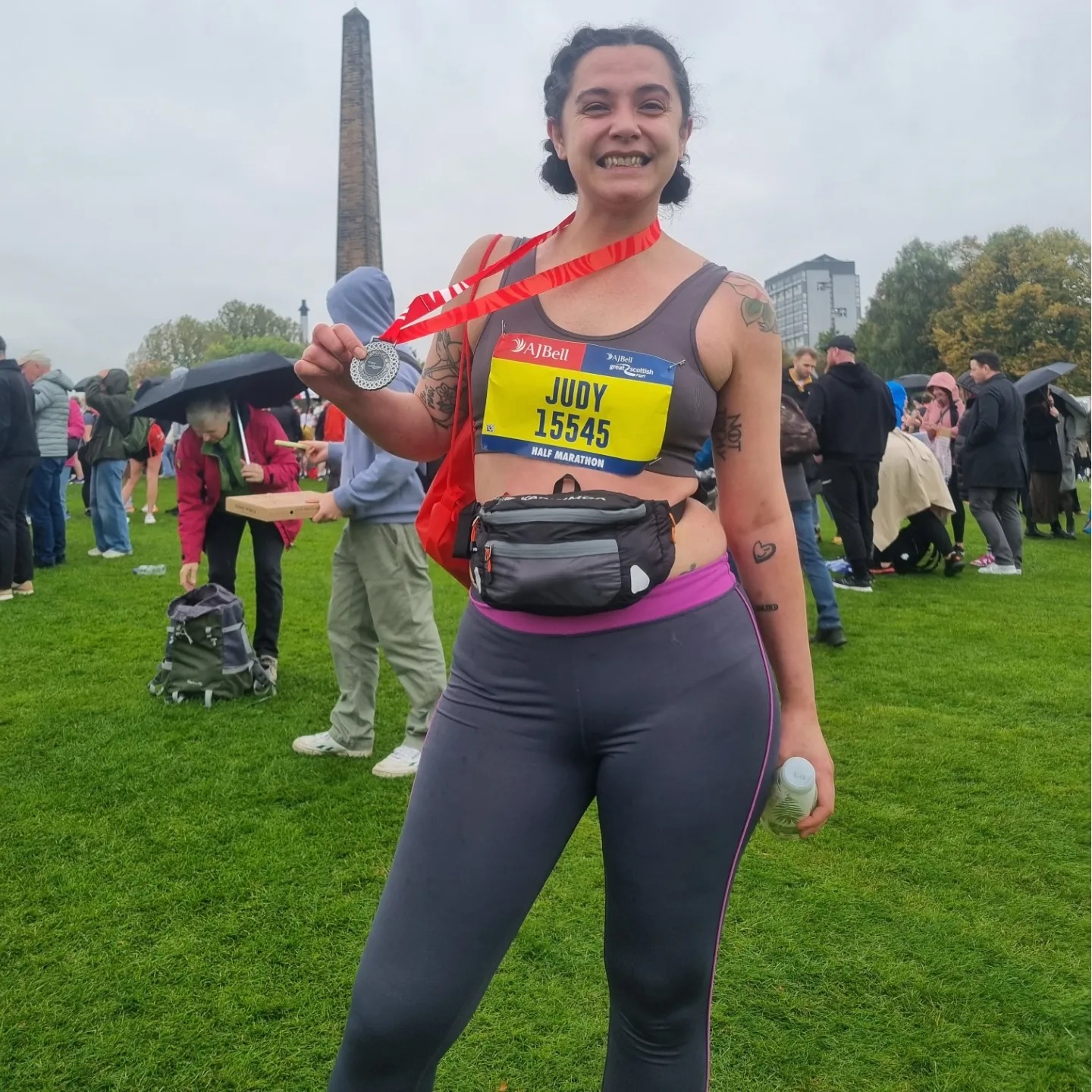 2 hours, 45 minutes and 15 seconds. Slower than I would have liked, but my runner’s stomach was not settled and I had to do an emergency runner’s poo and then a runner’s vomit mid-way, so all things considering, I’m very happy! AND I raised £1645 for Glasgow and Clyde Rape Crisis. That’s right: one thousand, six hundred and forty-five pounds. I’ve overwhelmed with the support. Thank you so much. You can still donate here if you want to.